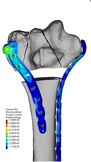 Using of Non-Linear Implicit Geometric Analysis for effective and reliable simulation of the deformation of the bone-implant construct under applied loading conditions, which would be greatly better than normal linear and explicit types of analyses. a
