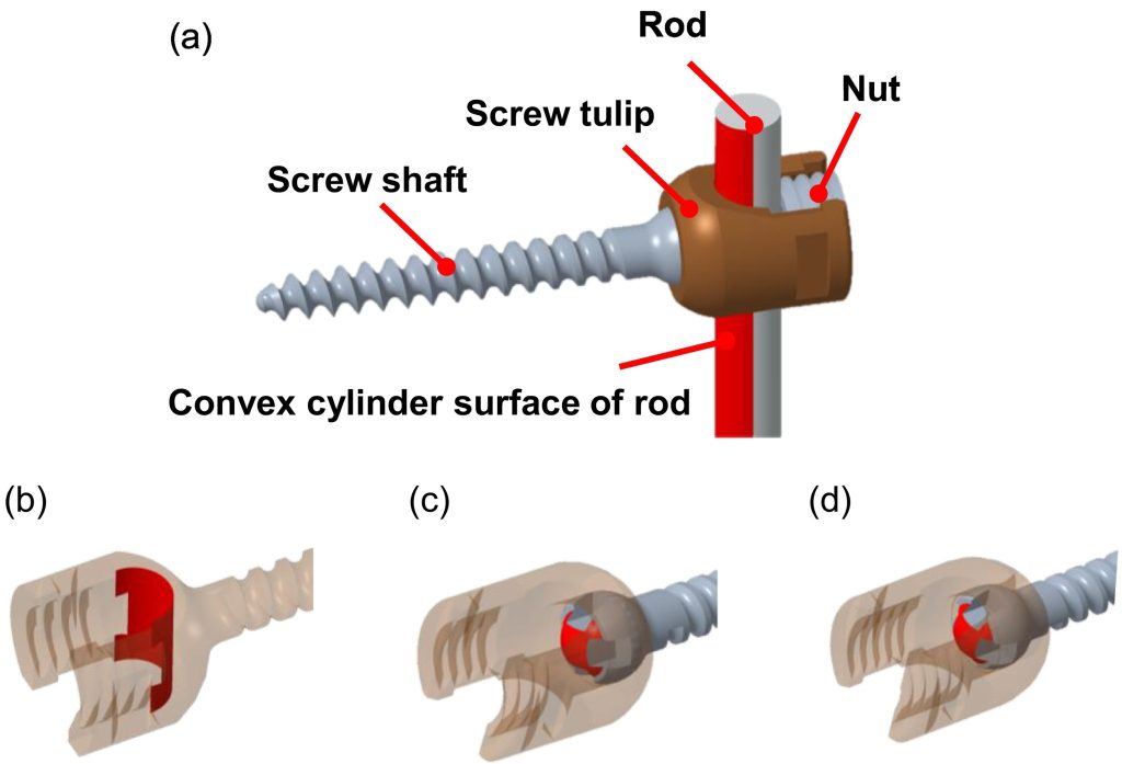 * پیچ پدیکل polyaxial  به گونه ای طراحی شده است که از قسمت خلفی ستون فقرات وارد شود. این پیچ در قسمت شفت رزوه می شود و در قسمت سر، بدون رزوه است تا بدنه پیچ نسبت به rod connector، با زاویه ای محدود قرار گیرد. رزوه‌ها در بدنه پیچ، سطح تماس بین پیچ و استخوان مهره‌ها را افزایش می‌دهند که با این کار اتصال پیچ با استخوان بهبود می‌یابد و یکپارچگی مکانیکی پیچ و استخوان حاصل می‌شود.