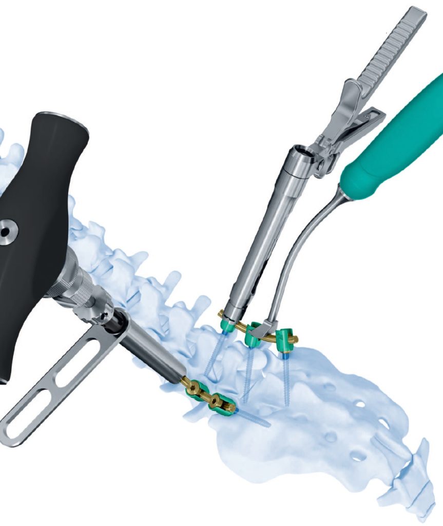 پس از ایجاد مسیر جایگذاری ایمپلنت، بر اساس طول سوراخ ایجاد شده توسط پروب، طول پیچ پدیکولار انتخاب می شود. سپس بر اساس محل آسیب دیده در ستون فقرات، پیچ با قطر مناسب (5.5 میلی متر برای قفسه سینه، 6.5 و 7.5 میلی متر برای قسمت کمری) انتخاب می شود.